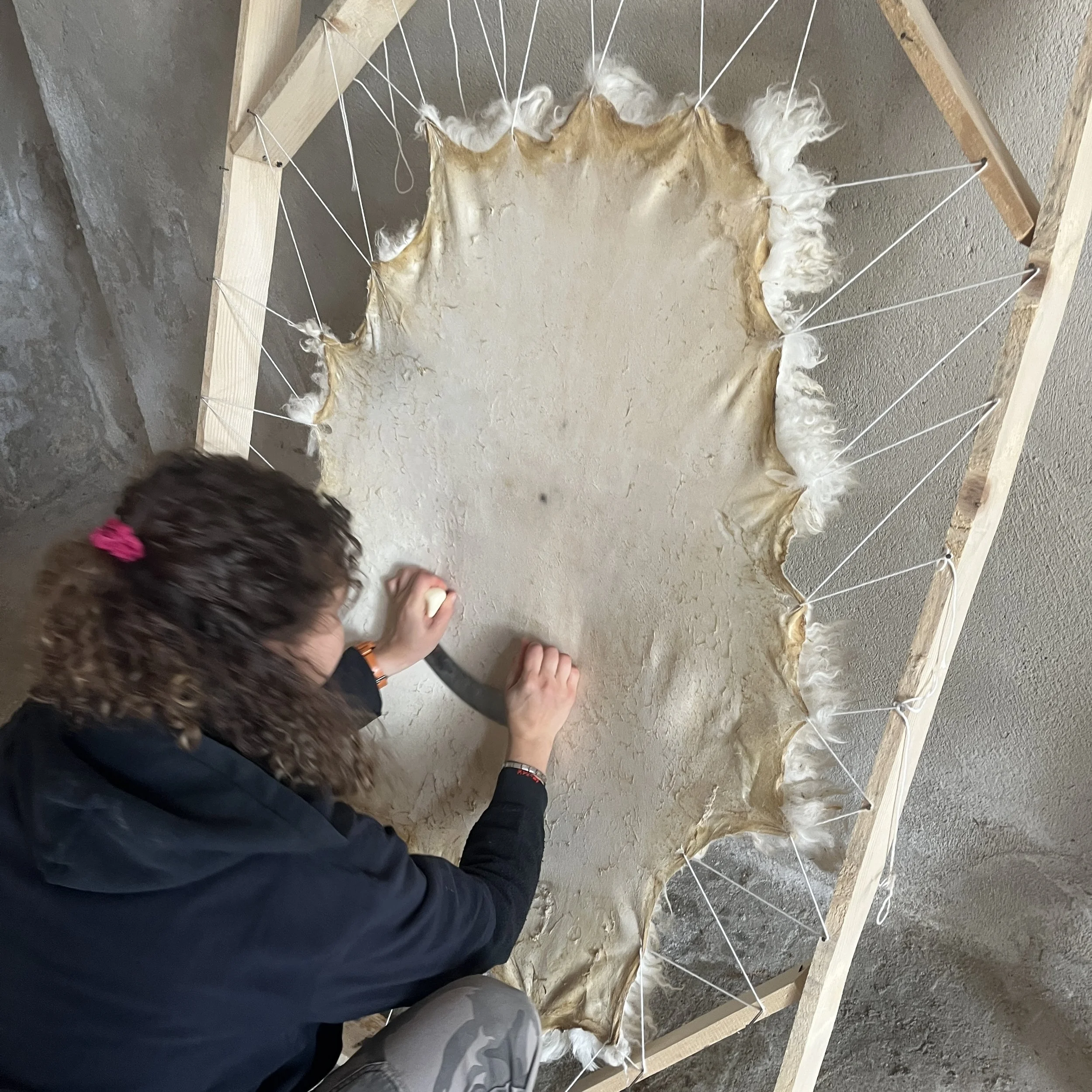 We will be preparing both goat and sheep hides for the tanning process.